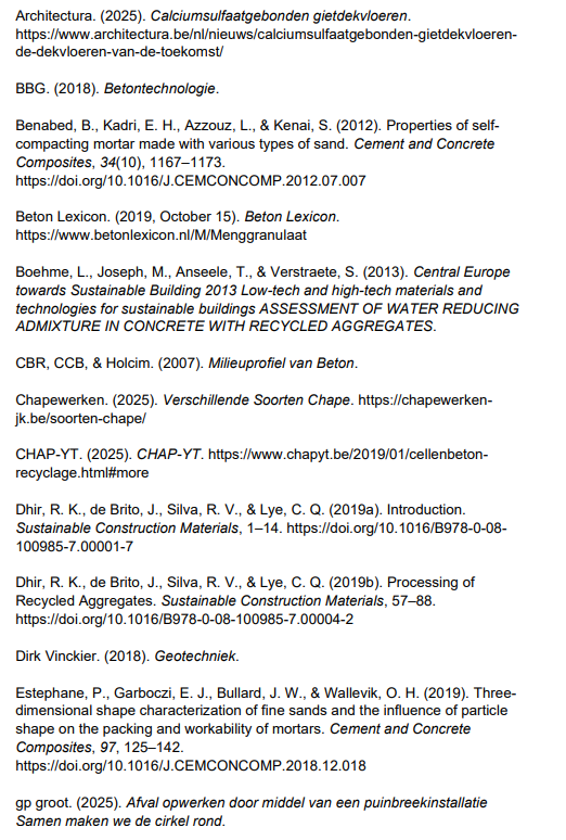 De bouwsector staat op een kruispunt. Grondstoffen raken uitgeput, de CO₂-uitstoot moet drastisch omlaag, en circulair bouwen schuift naar het centrum van elk toekomstgericht project. Binnen deze problematiek wordt nagegaan of er een duurzamer alternatief voor traditionele chape kan worden gevonden door natuurlijk rivierzand te vervangen door puinmateriaal.
