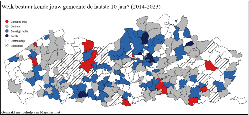 Hoewel alle Vlaamse gemeenten binnen hetzelfde wettelijke kader moeten werken en dus dezelfde regels moeten volgen, verschillen hun financiële keuzes aanzienlijk. De politieke kleur van de bestuurscoalitie speelt hier een zéér belangrijke rol. Gemeenten met een economisch linkse meerderheid heffen gemiddeld hogere belastingen. Omgekeerd kiezen rechtse coalities duidelijk voor een lagere belastingdruk.